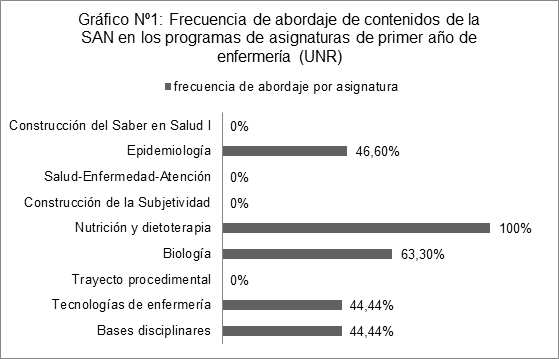 Figura 1. Fuente: Elaboración propia en base a los programas de las asignaturas de primer año de la Licenciatura en Enfermería de la Universidad Nacional de Rosario (UNR).